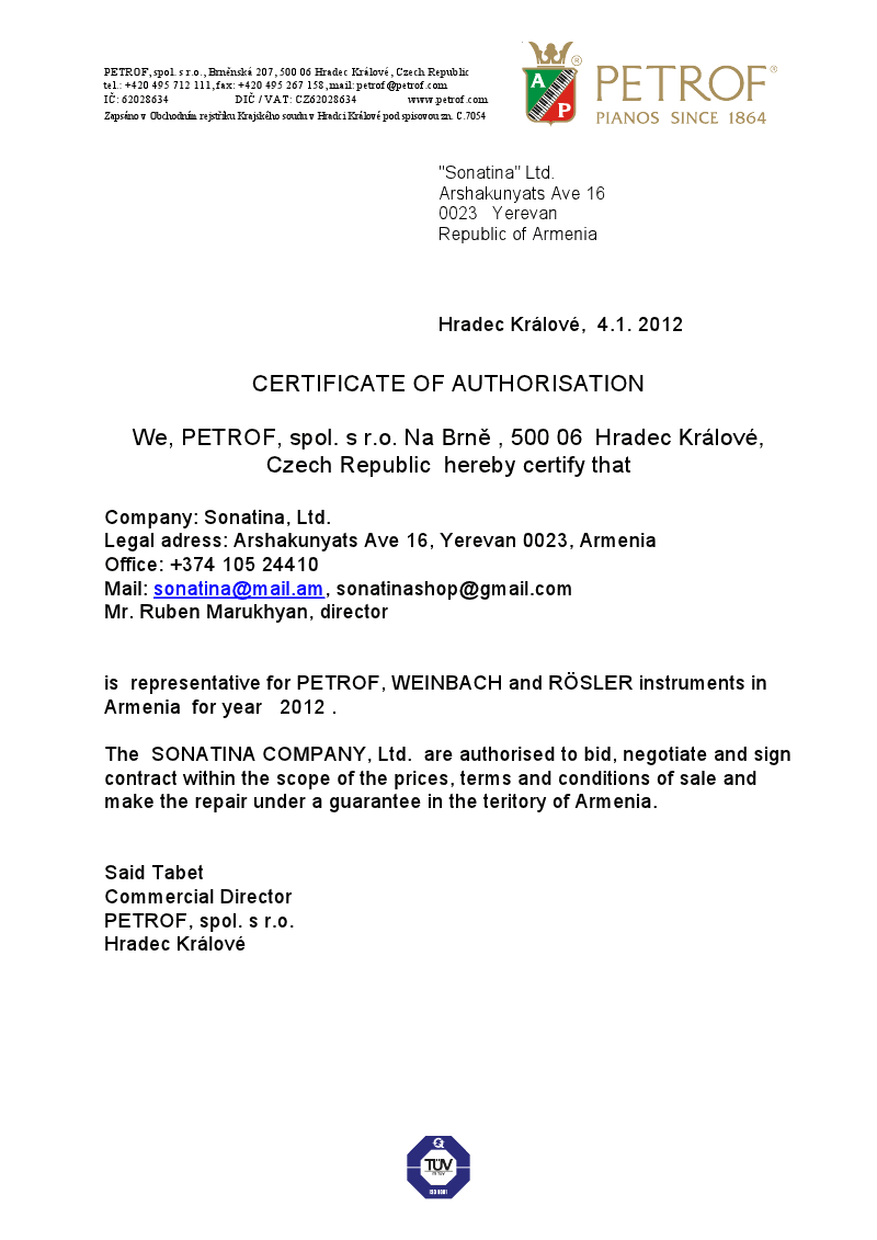 ՀՀ, Երևան 0002, Կողբացու 36, +(374)12 700701, +(374)44 700701, info@sonatina.am