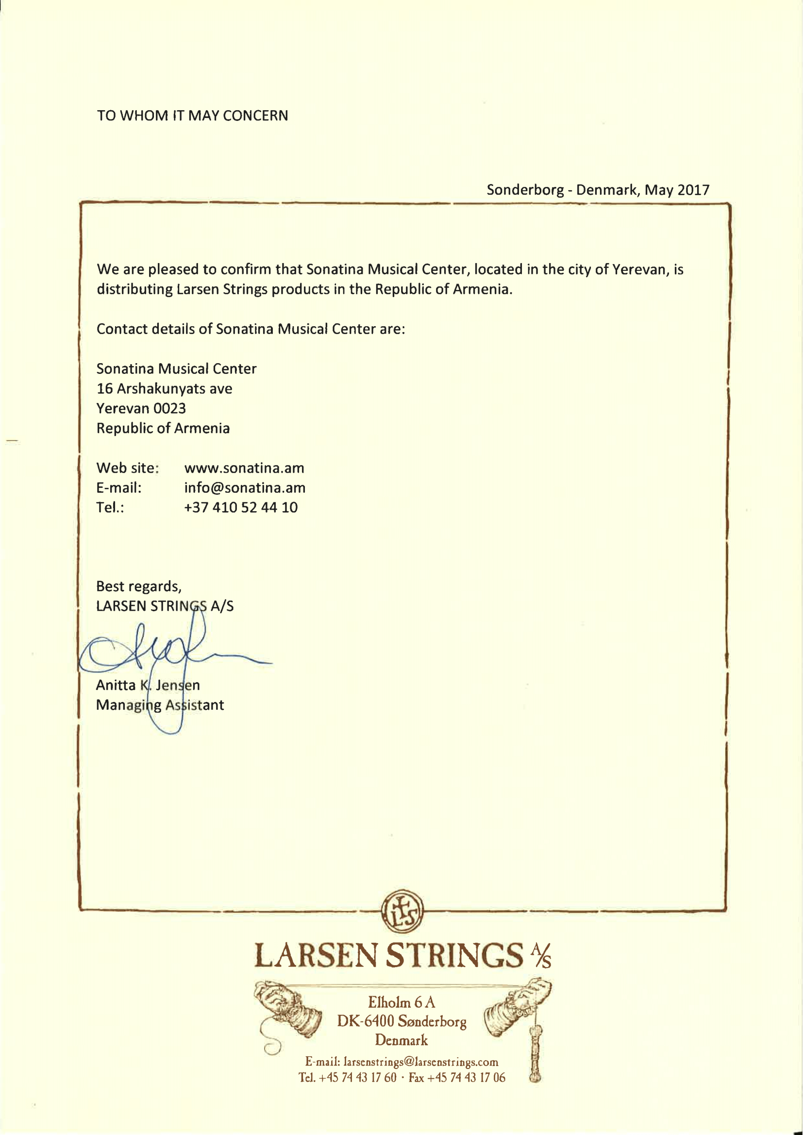 ՀՀ, Երևան 0002, Կողբացու 36, +(374)12 700701, +(374)44 700701, info@sonatina.am